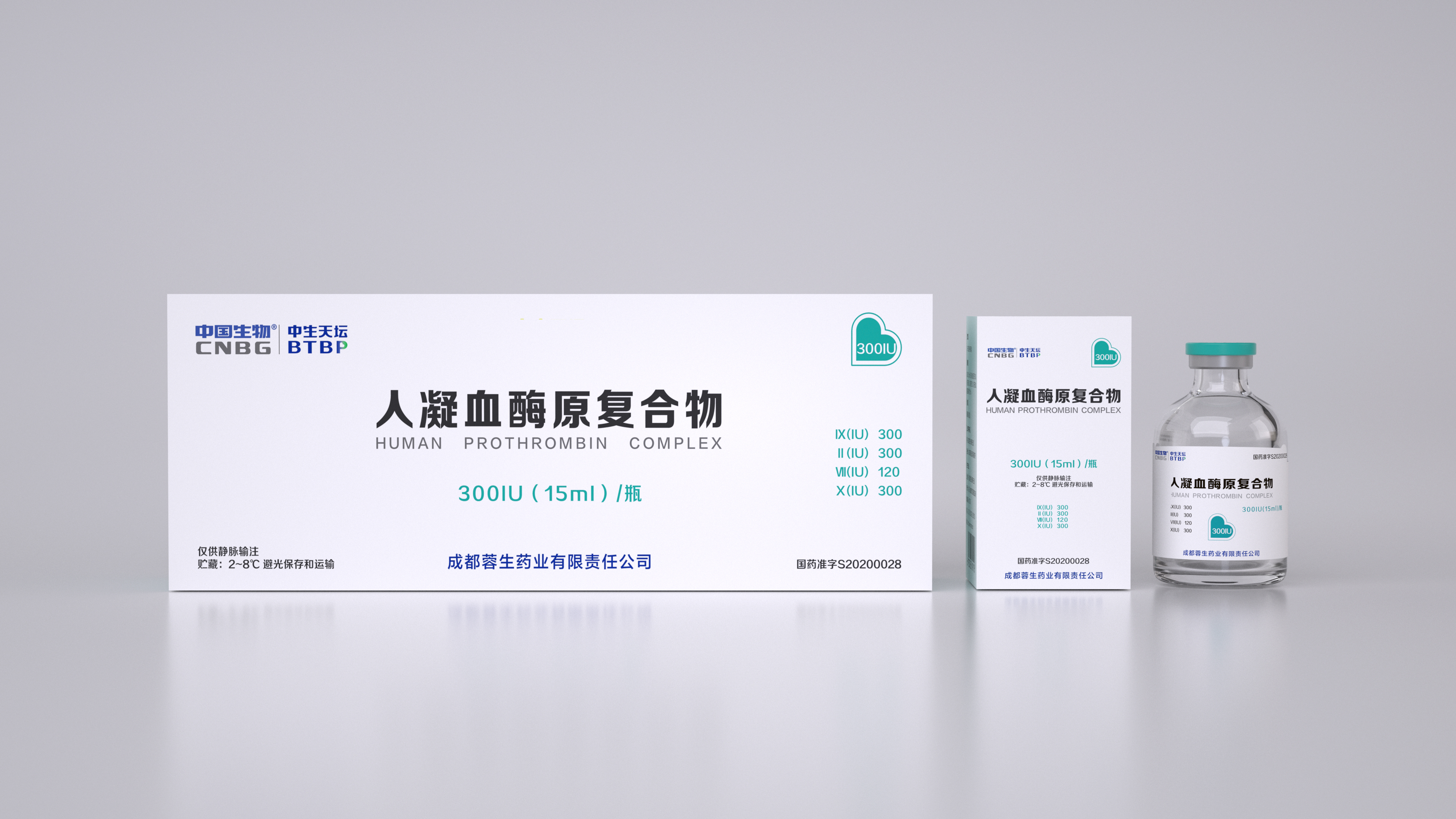 300IU(15ml)/瓶,每瓶含IX因子300IU、II因子300IU、VII因子120IU、X因子300IU,复溶后体积为15ml。
