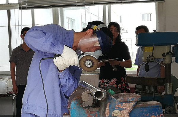 6月27日,在工程维修车间开展了焊接技能竞赛。比赛项目模拟实际的管道维修过程,对非压力管道做切割、打磨、焊接和安装。